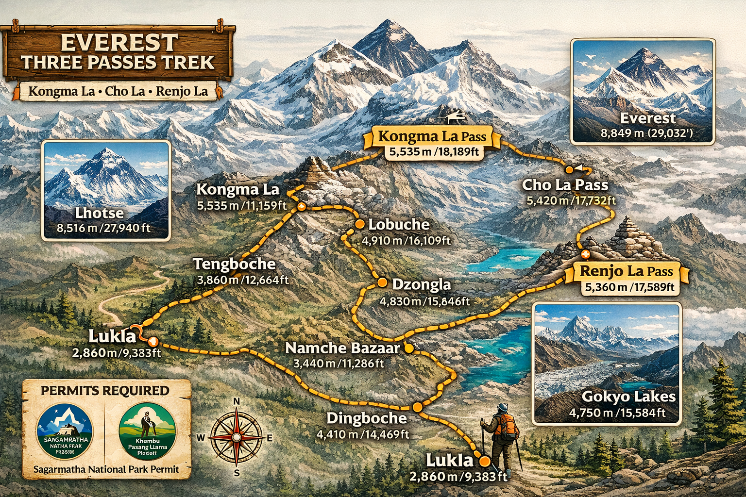 The Everest 3 Pass Trek is located in the Khumbu region of northeastern Nepal, part of the Solukhumbu District in Sagarmatha Zone. This trek traverses...